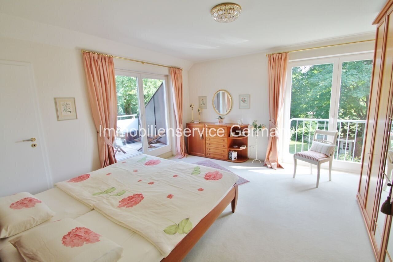No additions in the text!Bright bedroom with balcony and elegant crystal chandelier – your retreat with garden view!